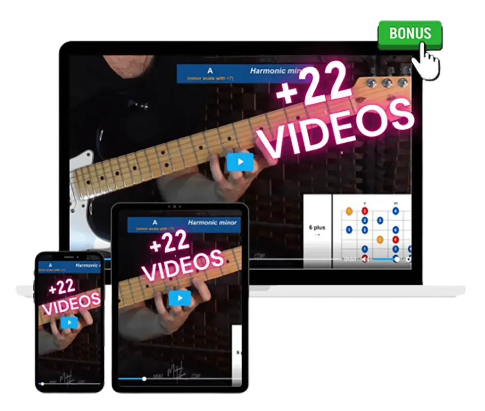 This tool cuts through all the talking and lets you play any guitar topic with a push of a button. Most courses and books don’t go that deep into advanced theory!